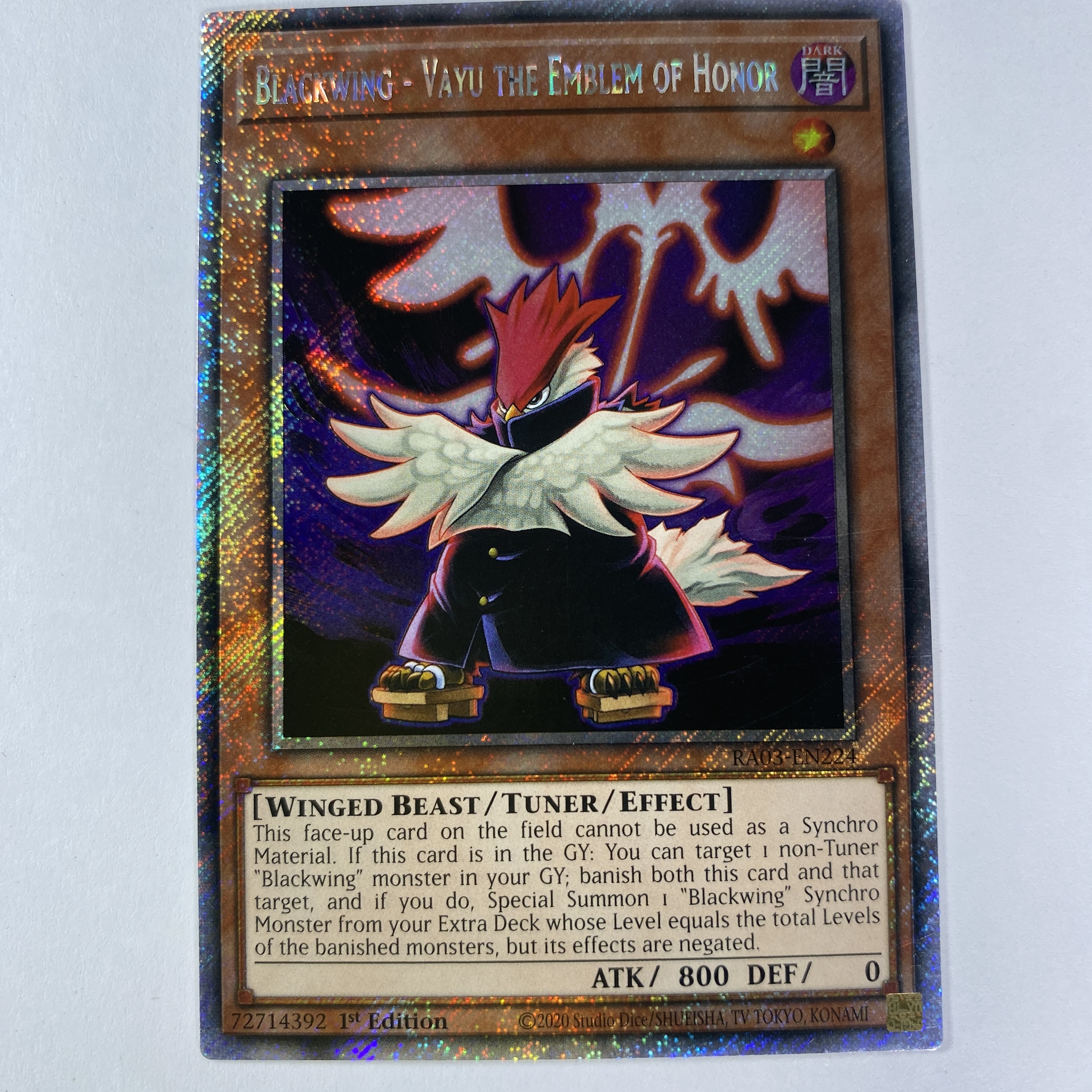 Blackwing - Vayu the Emblem of Honor carta yugi RA03-EN224 Platinum Rare