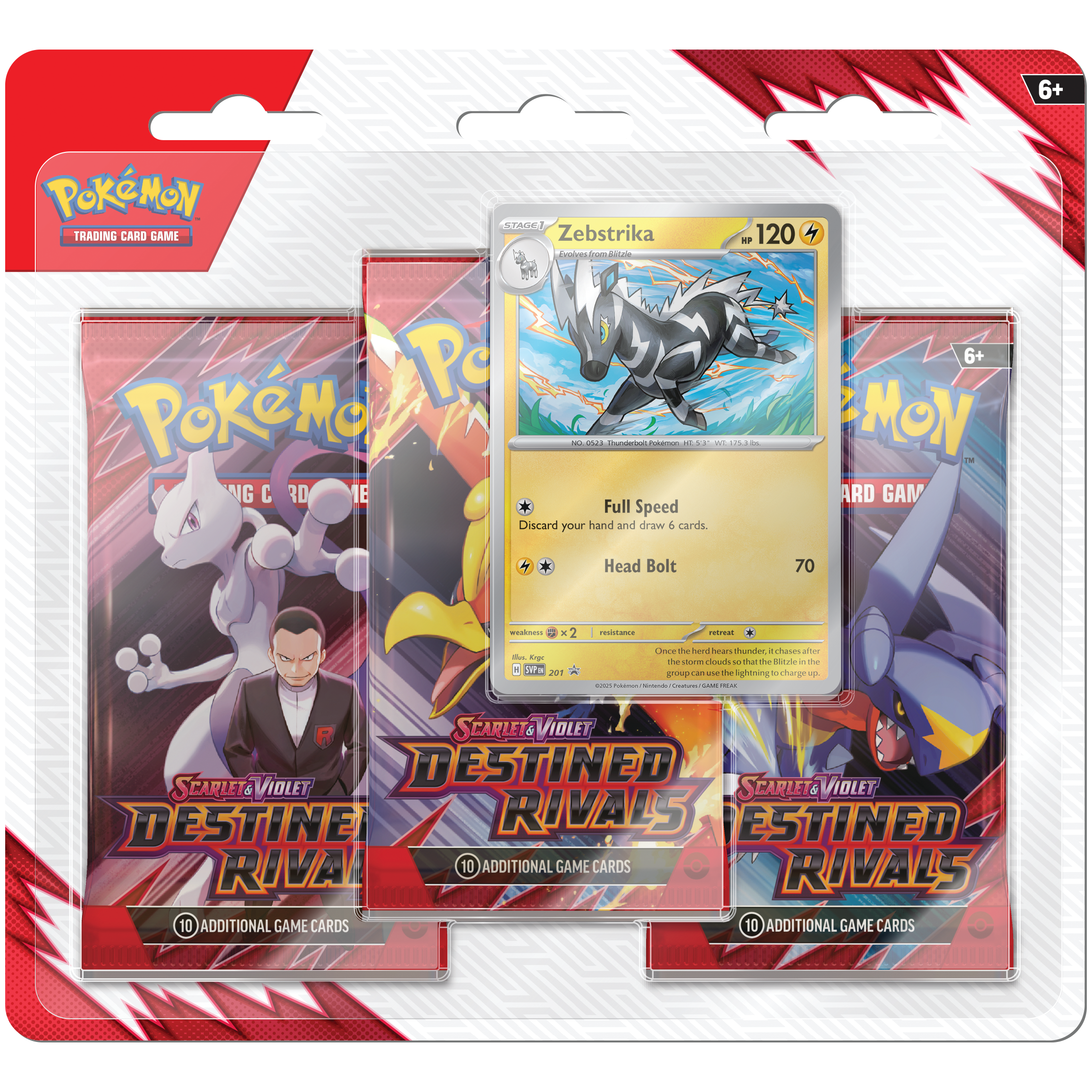 ¡Desata la velocidad eléctrica de Zebstrika con este dinámico blister pack! Parte de la expansión Destined Rivals, este producto en inglés te ofrece una excelente manera de reforzar tu colección o darle energía a tu mazo.